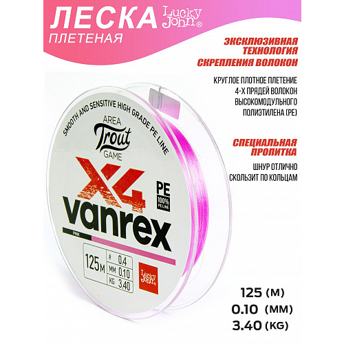 Шнур плетёный Lucky John Area Trout Game х4 BRAID Pink 125/010