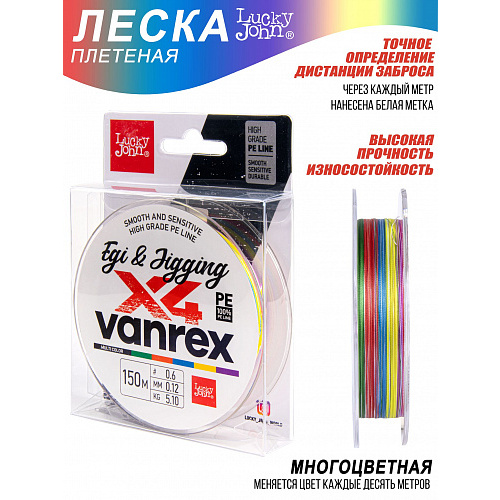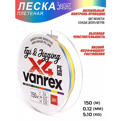 Шнур плетёный Lucky John Vanrex EGI & JIGGING х4 BRAID Multi Color 150/012