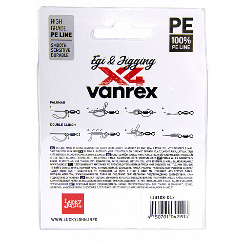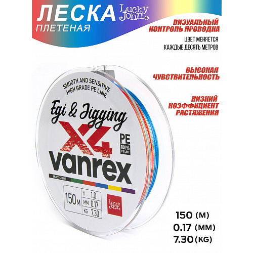 Шнур плетёный Lucky John Vanrex EGI & JIGGING х4 BRAID Multi Color 150/017