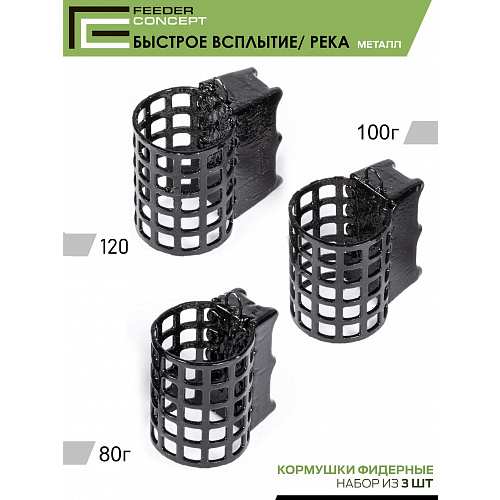 Набор металлических фидерных кормушек FC M1 БЫСТРОЕ ВСПЛЫТИЕ РЕКА 80г 100г 120г 3шт. коробочная версия