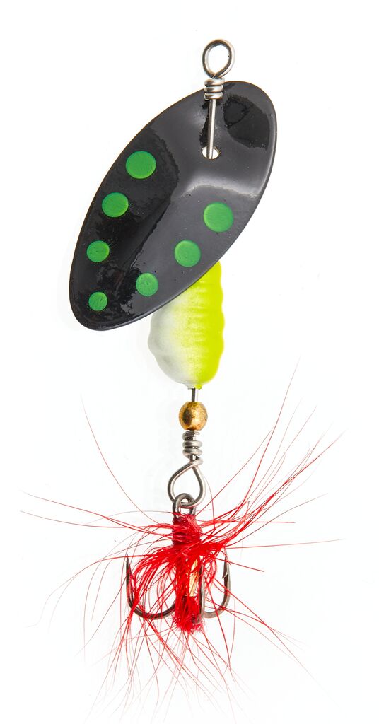 Чрезвычайно уловистая вращающаяся блесна от компании Lucky John, изготовленная по системе «инлайн». Смысл конструкции данной модели заключается в том, что лепесток прикреплен непосредственно на ось блесны. Практические испытание "вертушки" показали отличные результаты. Особенно результативной игра данной модели была на участках рек с очень быстрым течением, где другие блесны сбиваются с игры. Вращаясь вокруг оси, лепесток, кроме характерной вибрации, создает и неповторимый шумовой эффект, дополнительно привлекающий рыбу. Из самого начала, блесна разрабатывалась для ловли форели, но позже продемонстрировала хорошие результаты и для привычных нам речных рыб: окуня, щуки, а также"белых" хищников. Рекомендуемый тип проводки - равномерная.