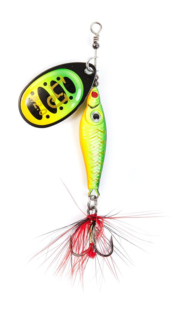 Trian Blade Round-оригинальная серия вращающихся блесен Lucky John с классической овальной формой лепестка.В этих приманках используются современные конструктивные решения, которые обеспечивают надежную и стабильную игру блесен, и делают их очень привлекательными для любой хищной рыбы. Вращающийся лепесток сделан из латуни и обладает устойчиво-ровным движением при различных способах и скоростях проводки. При вращении угол отклонения лепестка составляет 60 градусов. Лепестки окрашены с двух сторон, что вызывает повышенный интерес рыбы. Сердечник приманок сделан из тяжелого сплава, обеспечивая дополнительную дальность при забросе блесны, и имеет выверенную геометрическую форму сердечника, позволяющую до минимума сократить перекручивания шнура во время работы приманки. На всех тройниках связана яркая мушка, которая служит дополнительным раздражителем для рыбы и обеспечивает ровное вращение лепестка при самой медленной проводке.
