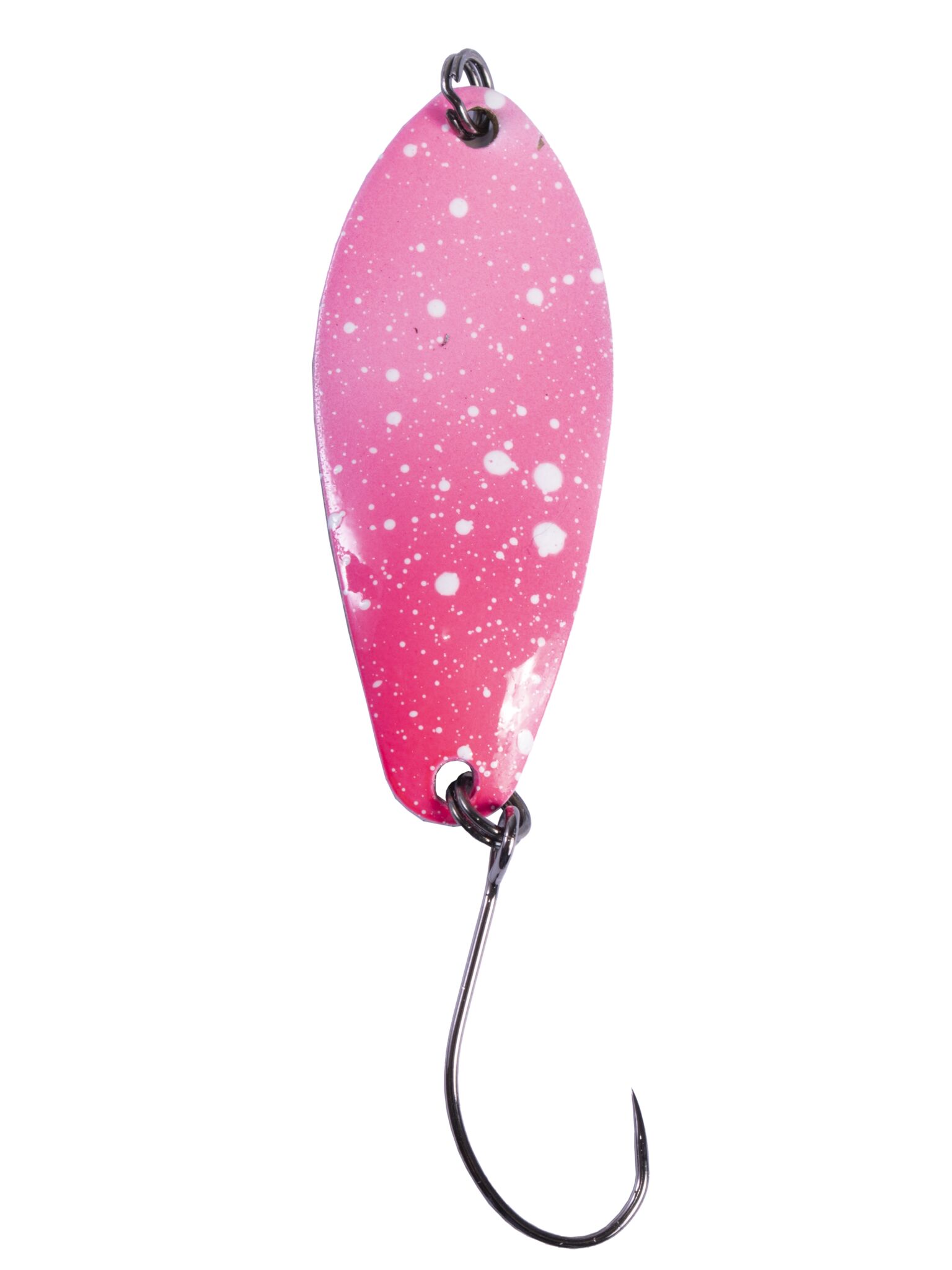 Lucky John CLEO - серия колеблющихся блесен для ультрала- и лайтовой спиннинговой ловли форели. Эти блесны соответствуют всем требованиям , предъявляемым к приманкам для ловли форели на платных, а так же для ловли рыбы в естественных водоемах и речках со средним течением и с небольшими глубинами. При ловле форели рекомендуется крепить крючок через заводное кольцо к узкой стороне блесны.
