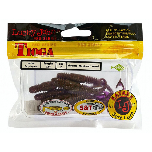Tioga – приманка, разработанная специально для ловли окуня и судака. Оригинальная форма тела, при движении в воде генерируют привлекающие хищника колебания. Боковые ребрышки усиливают игру приманки, придавая ей «живые» движения. Гибридная приманка имеет червеобразное тело с характерным утолщением в передней части и небольшой хвостик-копытце от виброхвоста. Приманка обладает привлекательным запахом макрели. Tioga 51 и 61 мм – лучшие приманки для микроджига, причем монтировать их можно как на джиг-головке, так и на офсетном крючке. Более крупные приманки – Tioga 99мм оптимальны для классического джига, а Tioga 75мм может успешно применяться в самых различных разнесенных оснастках. Самые мелкие приманки привлекают внимание окуня, бычка-ротана и другой «микроджиговой» рыбы. Модели покрупнее – заинтересуют щуку и судака. Формула Scent&Taste Inside Formula гарантирует то, что после поклевки, рыба будет максимально долго удерживать приманку во рту, что позволит всегда и своевременно выполнить результативную подсечку