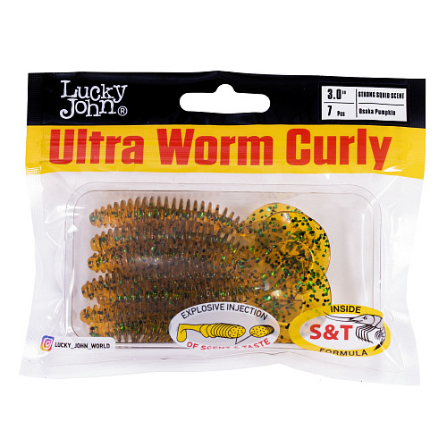 Твистеры съедоб. искусст. LJ Pro Series ULTRAWORM CURLY 3,0in (07.62)/PA19 7шт.