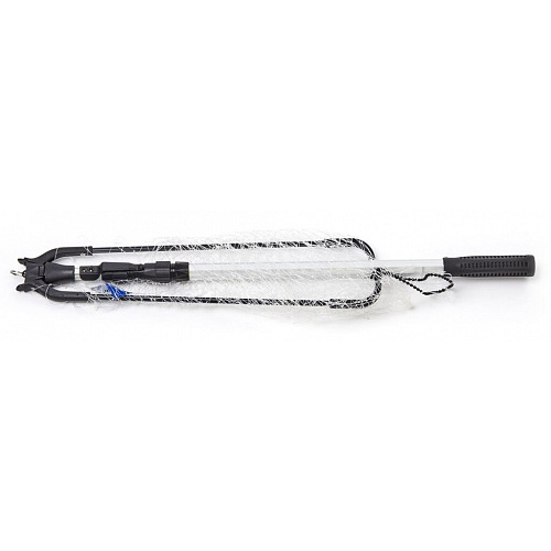 Длинный складной подсачек с треугольной формой сачка с сеткой из лески, оборудованный телескопической рукояткой.