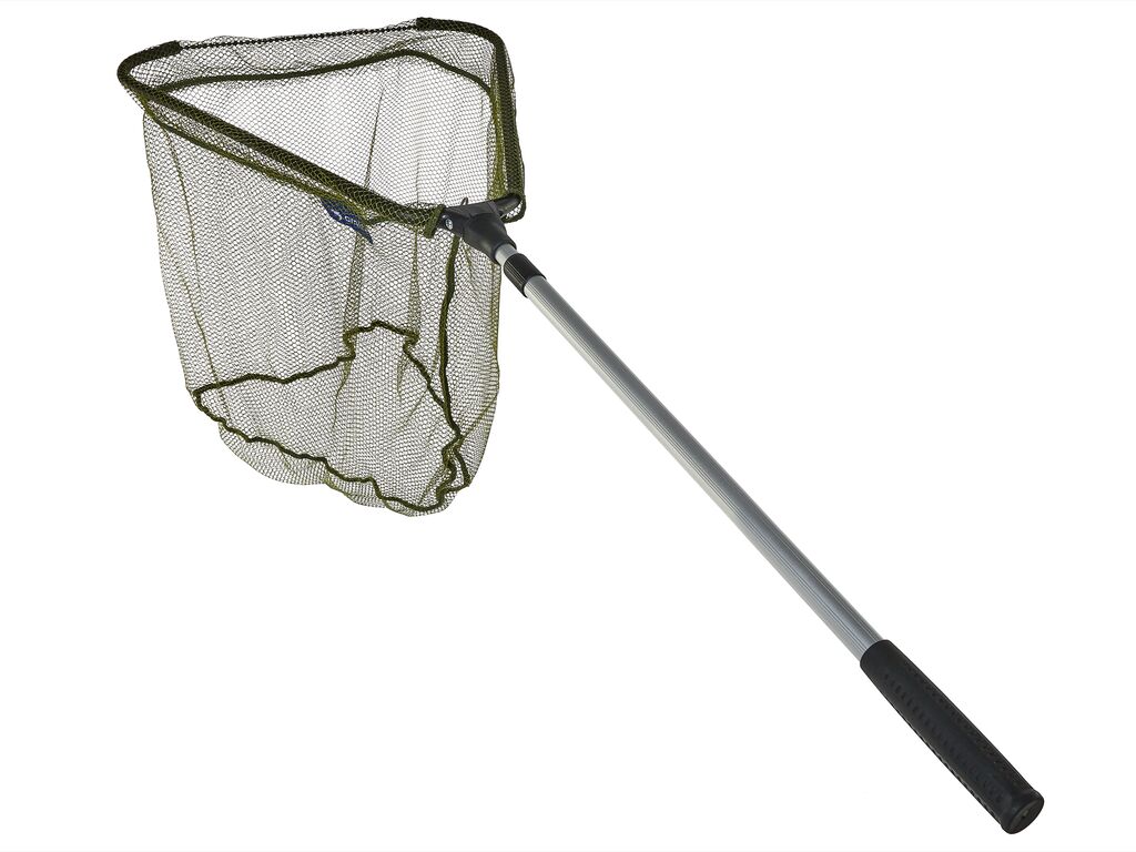 Складной подсачек с треугольной формой сачка и с телеско -пической рукояткой.