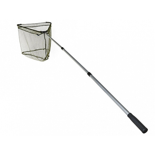 Складной подсачек с треугольной формой сачка и с телеско -пической рукояткой.