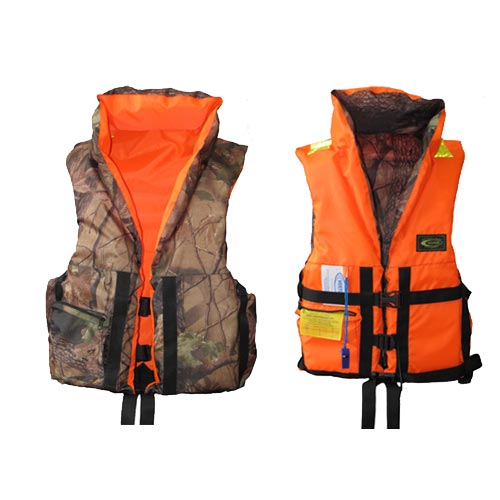 Спасательный жилет из ткани сигнальной расцветки оранжевого цвета (обрат. сторона - камуфлированная)со светоотражающими полосами для обнаружении в темноте