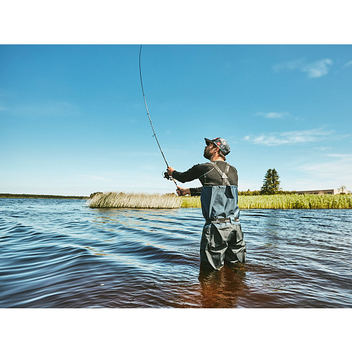 Забродный полукомбинезон изготовлен из высококачественного четырехслойного «дышащего» мембранного материала. Минимальное количество швов, удобный крой, идеальный баланс между прочностью, водонепроницаемостью и «дышащими» свойствами. Сапоги изготовлены из легкой и прочной резины. Имеют подкладку из неопрена- это обеспечивает комфорт и дополнительное тепло. Полукомбинезон предназначен для рыболовов-любителей.• 4-х слойный мембранный материал