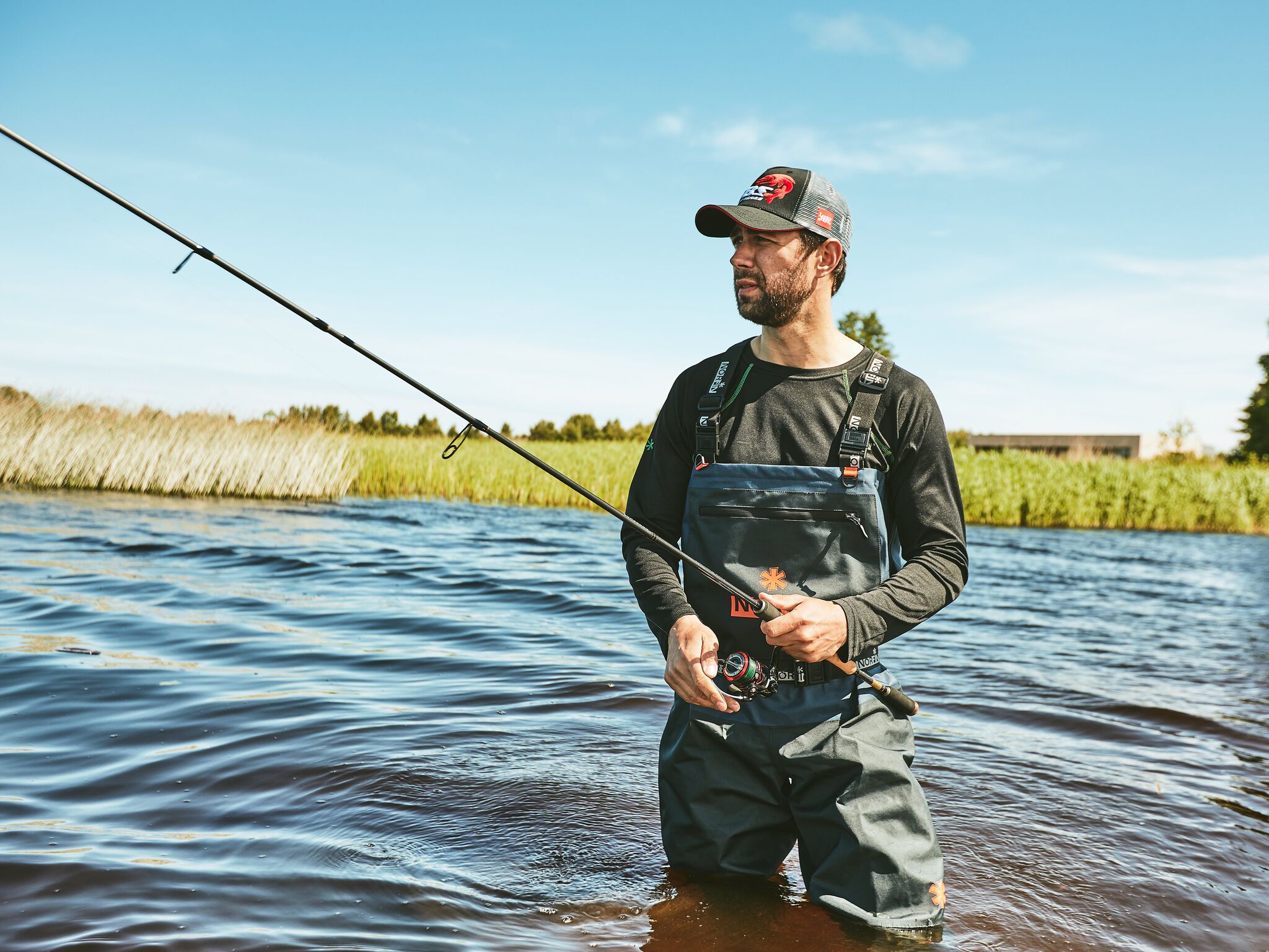 Забродный полукомбинезон изготовлен из высококачественного четырехслойного «дышащего» мембранного материала. Минимальное количество швов, удобный крой, идеальный баланс между прочностью, водонепроницаемостью и «дышащими» свойствами. Сапоги изготовлены из легкой и прочной резины. Имеют подкладку из неопрена- это обеспечивает комфорт и дополнительное тепло. Полукомбинезон предназначен для рыболовов-любителей.• 4-х слойный мембранный материал