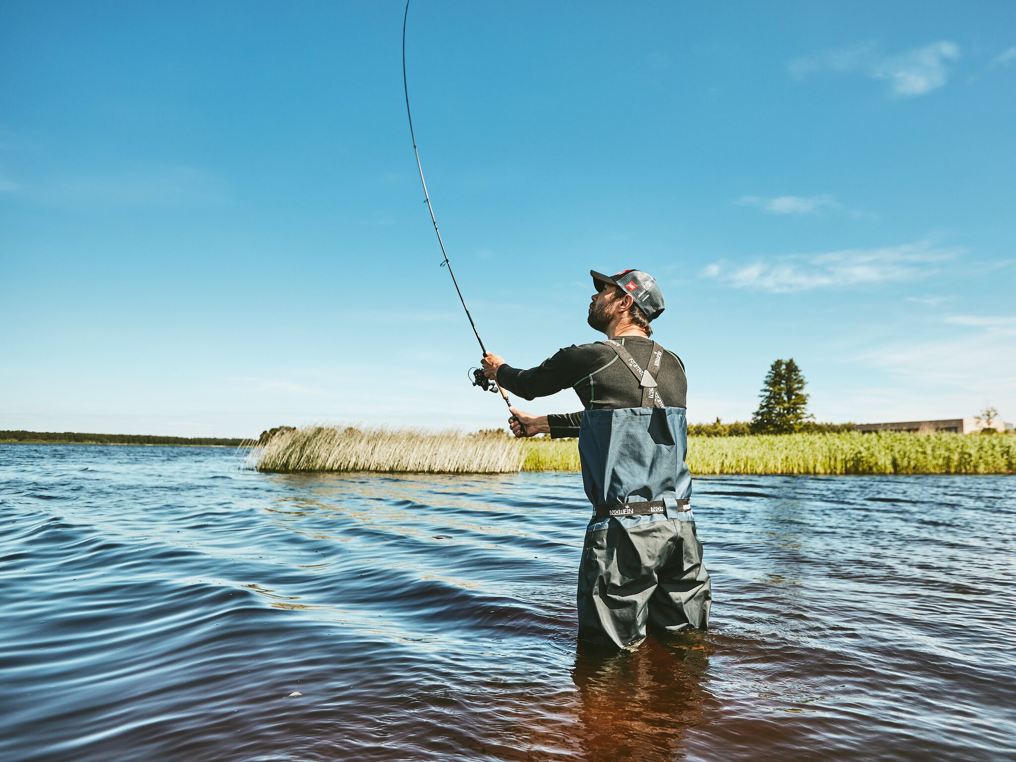 Забродный полукомбинезон изготовлен из высококачественного четырехслойного «дышащего» мембранного материала. Минимальное количество швов, удобный крой, идеальный баланс между прочностью, водонепроницаемостью и «дышащими» свойствами. Сапоги изготовлены из легкой и прочной резины. Имеют подкладку из неопрена- это обеспечивает комфорт и дополнительное тепло. Полукомбинезон предназначен для рыболовов-любителей.• 4-х слойный мембранный материал