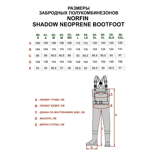 Полукомбинезон заброд. Norfin SHADOW NEOPRENE BOOTFOOT р.42-M с сапогами резина