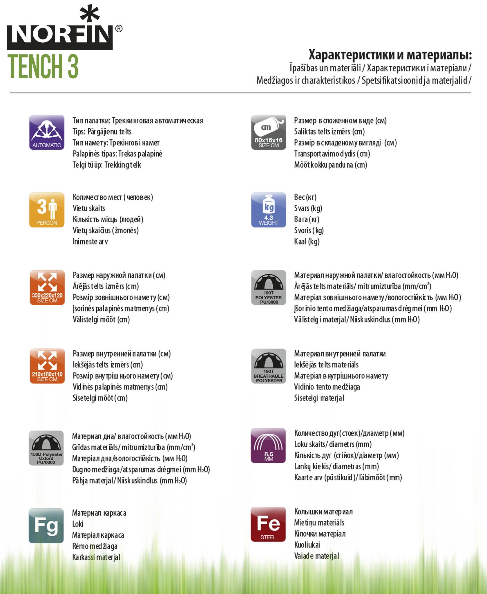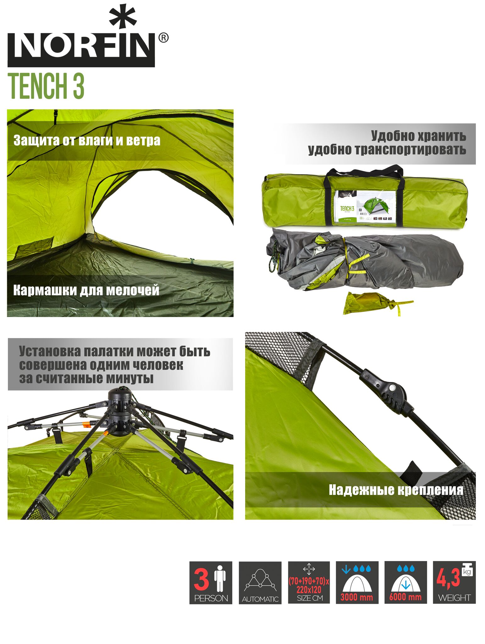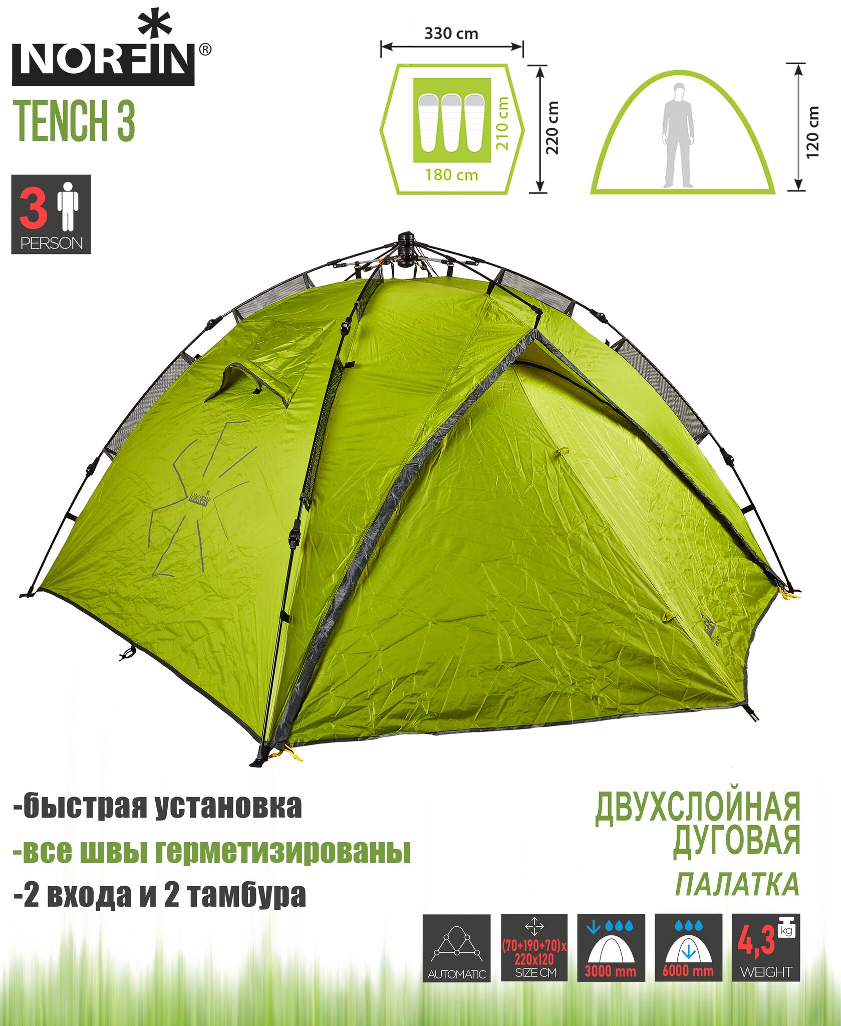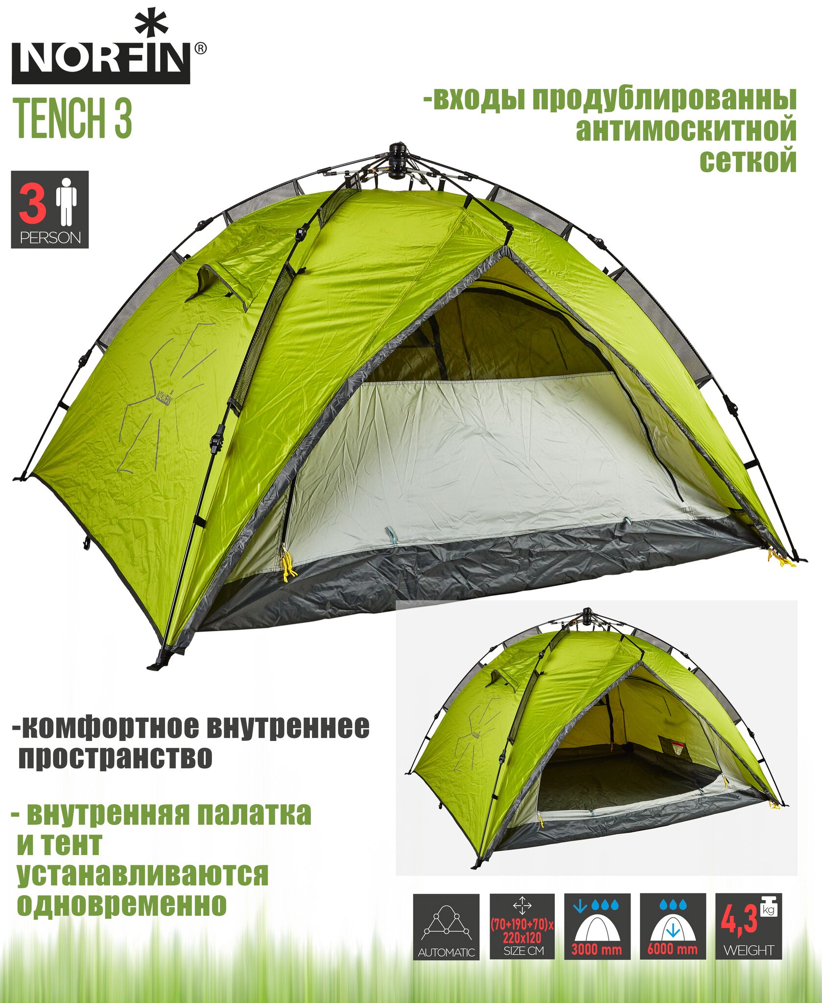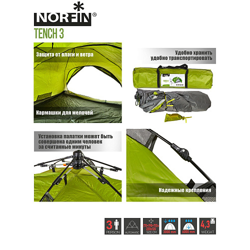 Палатка автомат. 3-х мест. Norfin TENCH 3 NF