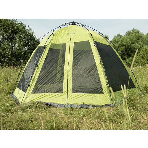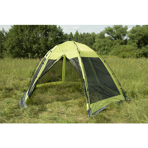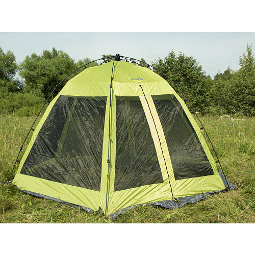 Полуавтоматический каркасный тент-шатер предназначен для использования в качестве укрытия от солнца, защиты от насекомых, а также для ночлега во время туристических походов, отдыха на природе, охоты или рыбалки.-вход один