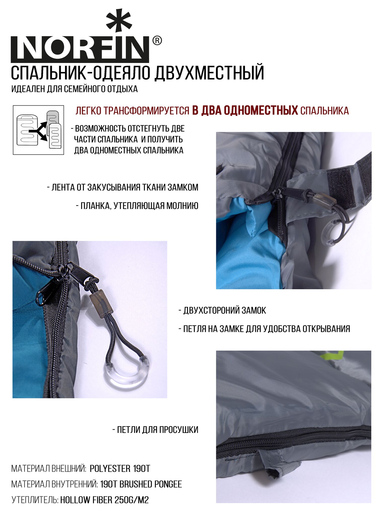 Мешок-одеяло спальный Norfin ALPINE COMFORT DOUBLE 250
