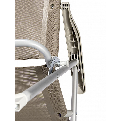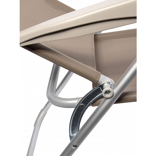 Кресло-шезлонг складное с возможностью подбора и фиксации удобного для вас положения спинки. Регулировка происходит при помощи поднятия подлокотников сидя в кресле, просто и без усилий. Для этого необходимо приподнять подлокотники, выбрать необходимый угол спинки, опустить и зафиксировать пластиковые подлокотники.Обивка спинки и сиденья выполнена из гипоалергенной, прочной и устойчивой к выцветанию синтетической ткани, имеющей водоотталкивающее покрытие. Материал легко моется, устойчив к загрязнениям и воздействию ультрафиолетовых лучей. Подушка-подголовник с мягким наполнителем, легко снимается для чистки.
