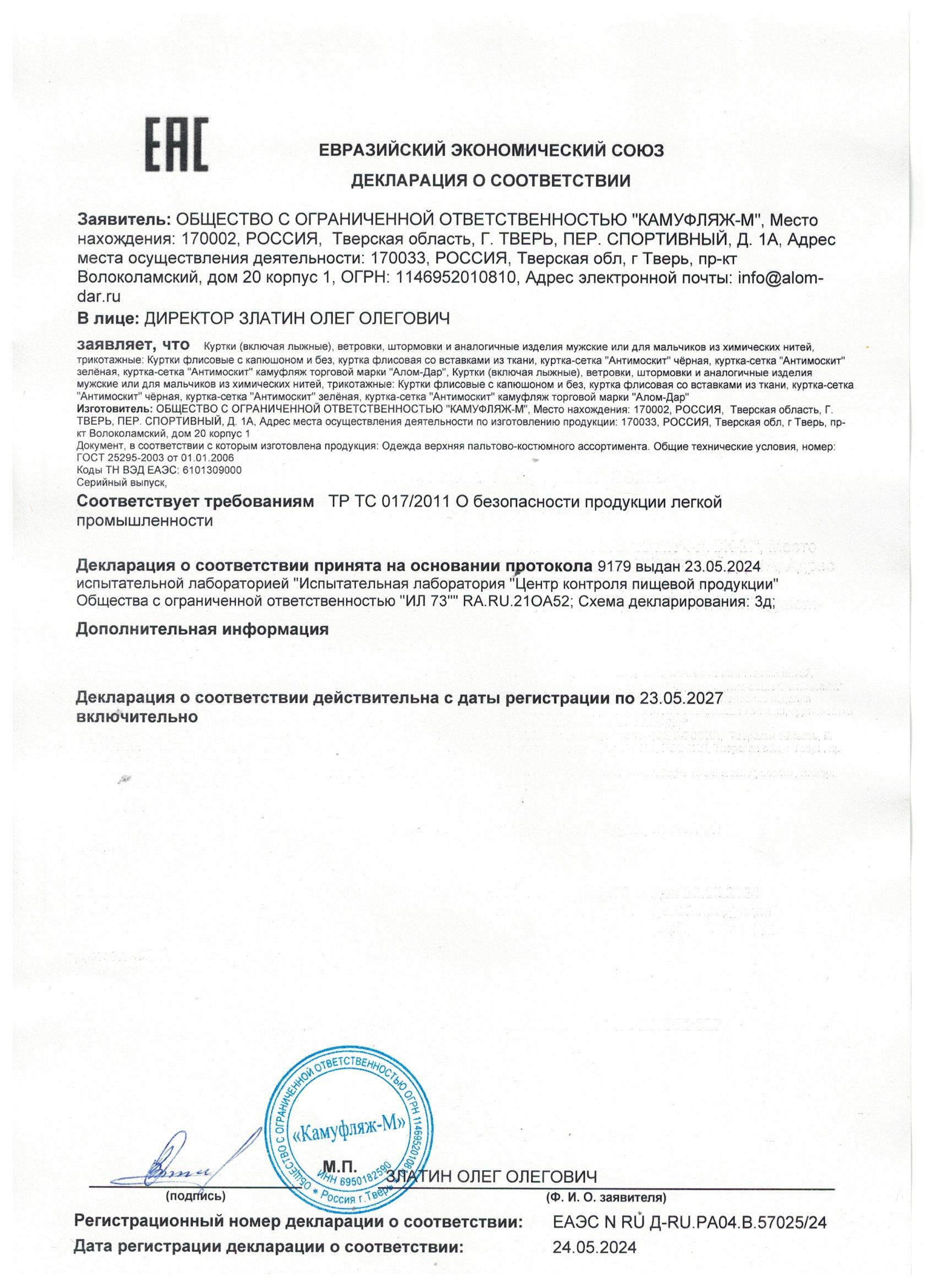 | Сертификация: | Товар декларирован на соответствие |