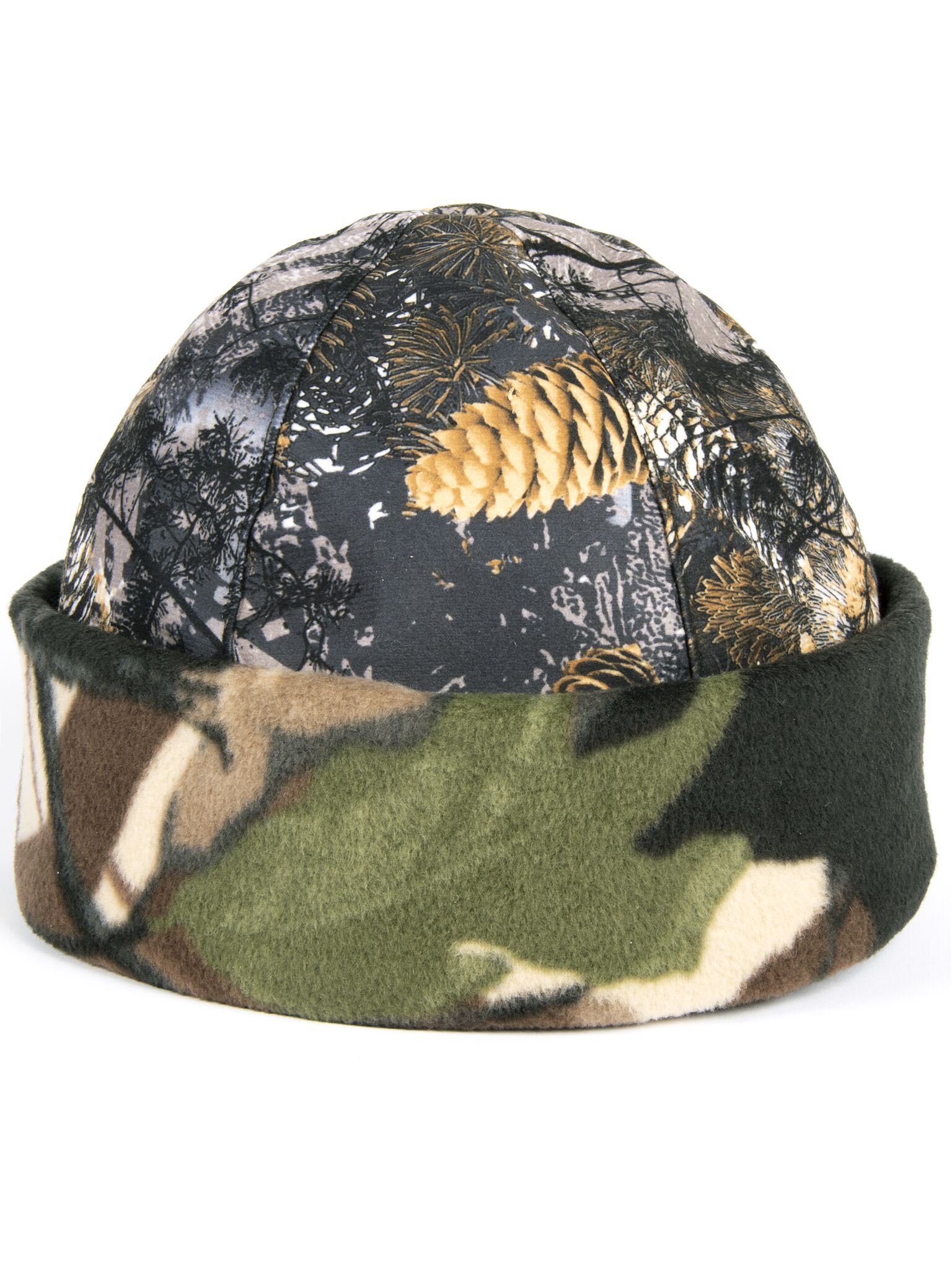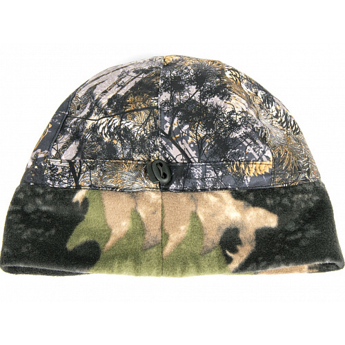 Демисезонная шапка. Выполнена из смесовой ткани ( полиэстер 65%, х/б 35% ) снаружи и флиса внутри.Благодаря смесовой ткани обладает водоотталкивающими свойствами, «дышит» и не шуршит.