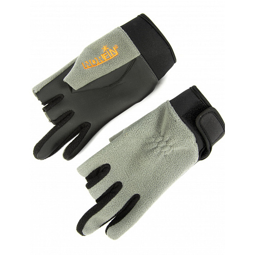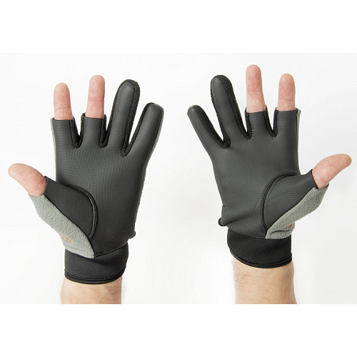 Ветрозащитные перчатки из полиэстера с PU мембраной и неопрена. У перчаток обрезаны большой, средний и указательный пальцы для прямого контакта со снастью.