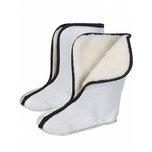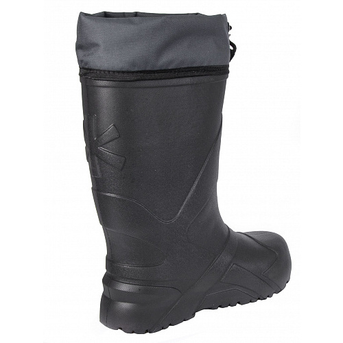 Сапоги cделаны из материала EVA, имеют вынимаемый вкладыш, обеспечивают термозащиту в динамике при температуре до –45°С. Удобная амортизирующая колодка, позволяет преодолевать большие расстояния по снегу или льду с минимальными физическими затратами и нагрузками на суставы и позвоночник. Конструкция подошвы, без выраженного каблука, увеличивает сцепление и устойчивость на снегу и льду. Внутреннее строение подошвы имеет «вафельную структуру», позволяющая собирать конденсат с вкладыша, если он образовался. Пятислойный вкладыш, толщиной 20 мм, обеспечивает термоизоляцию и отвод влаги от тела. ‣ 70% искусственный мех, 30% натуральной овечьей шерсти – термозащита и отвод влаги от ног. ‣ Трикотажно-гидрофобное волокно – мембрана для отвода влаги. ‣ Нетканое полотно – сохраняет форму вкладыша. ‣ Металлизированная перфорированная фольга – отражает холод наружу, а тепло к ноге. ‣ Мембранная защитная сетка – сохраняет целостность фольги. ‣ Материал Oxford 600 - повышает износостойкость пяточной части вкладыша.