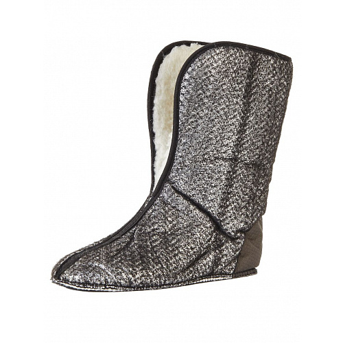 Сапоги cделаны из материала EVA, с увеличенной высокой манжетой, имеют вынимаемый вкладыш, обеспечивают термозащиту в динамике при температуре до –45°С. Удобная амортизирующая колодка, позволяет преодолевать большие расстояния по снегу или льду с минимальными физическими затратами и нагрузками на суставы и позвоночник. Конструкция подошвы, без выраженного каблука, увеличивает сцепление и устойчивость на снегу и льду. Внутреннее строение подошвы имеет «вафельную структуру», позволяющая собирать конденсат с вкладыша, если он образовался. Пятислойный вкладыш, толщиной 20 мм, обеспечивает термоизоляцию и отвод влаги от тела. ‣ 70% искусственный мех, 30% натуральной овечьей шерсти – термозащита и отвод влаги от ног. ‣ Трикотажно-гидрофобное волокно – мембрана для отвода влаги. ‣ Нетканое полотно – сохраняет форму вкладыша. ‣ Металлизированная перфорированная фольга – отражает холод наружу, а тепло к ноге. ‣ Мембранная защитная сетка – сохраняет целостность фольги. ‣ Материал Oxford 600 - повышает износостойкость