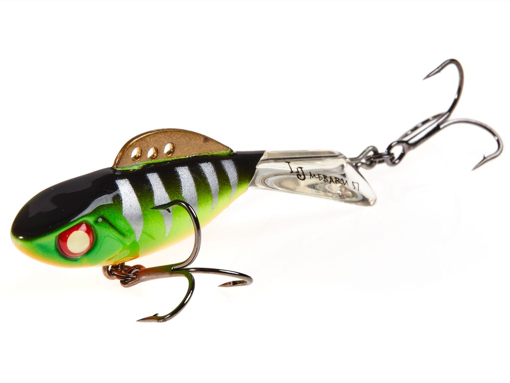 Mebaru – балансир, разработанный в Японии, для ловли хищной рыбы со льда и в отвес с дрейфующей лодки. Приманка изготовлена из свинцового сплава с корпусом и хвостом, сформированными из цельного морозостойкого и ударопрочного пластика ABS. Длинный хвост обеспечивает четкие развороты приманки в крайних точках траектории движения. В спинном плавнике, изготовленном из латуни, имеется три отверстия. В зависимости от точки крепления, игра приманки изменяется.На приманке установлены крючки Owner.