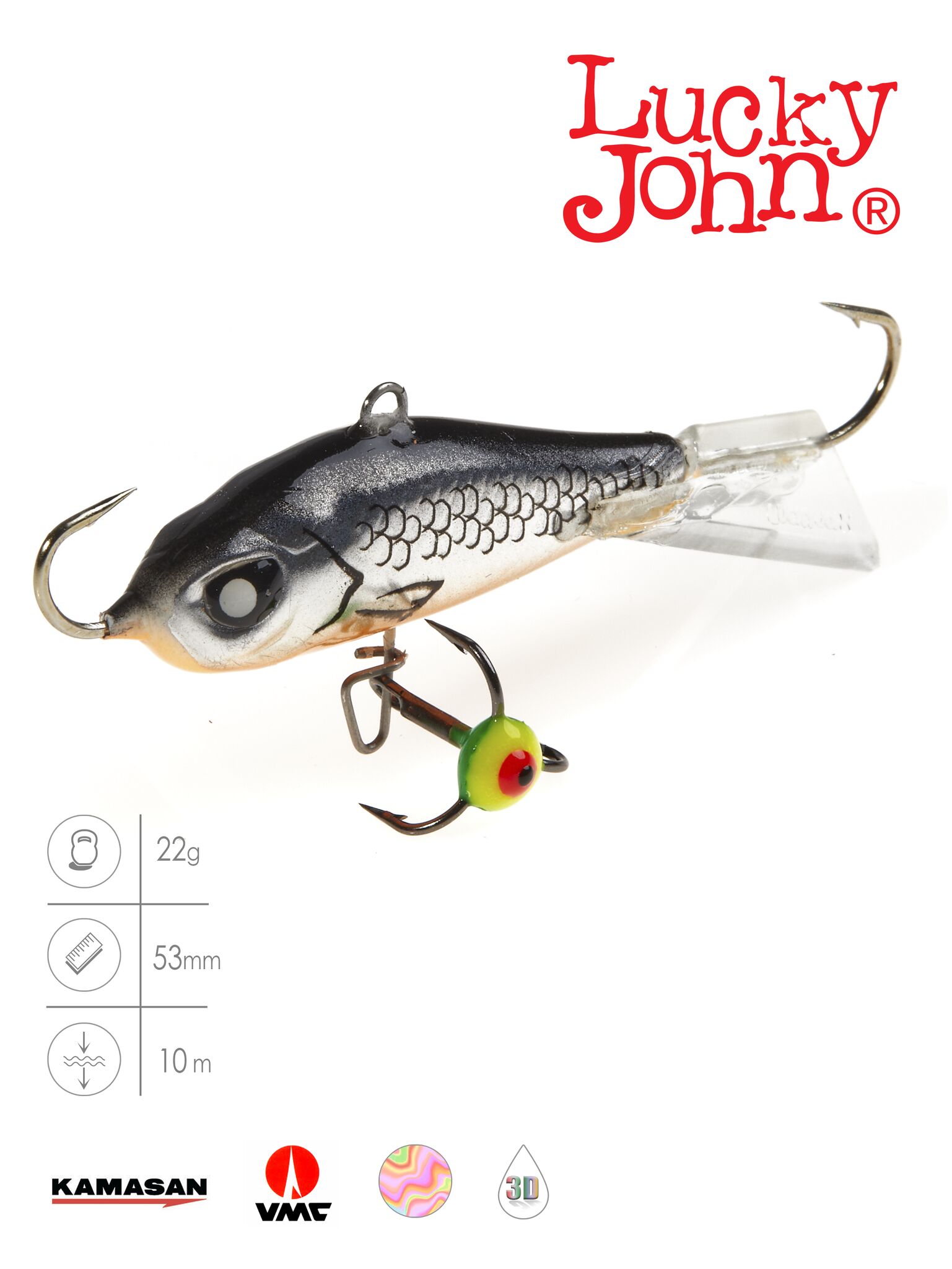 Балансир Lucky John BALTIC – довольно тяжелая приманка, она с успехом ловит рыбу на глубоких водоемах, как с течением, так и без него. Она будет очень востребована на таких крупных реках как Ока или Волга. В настоящее время приманка доступна в трех размерах – 25, 40 и 50 мм и весом 6, 10 и 22г соответственно. Хвостовое оперение может быть красным или прозрачным, изготовлено из морозостойкого пластика и приклеено к телу приманки суперпрочным клеем. Агрессивный «самурайский» взгляд, придает балансирам BALTIC узнаваемость среди приманок Lucky John, а их крупные глаза окончательно снимают все сомнения у хищной рыбы, перед атакой на беспечно плавающего «толстячка».
