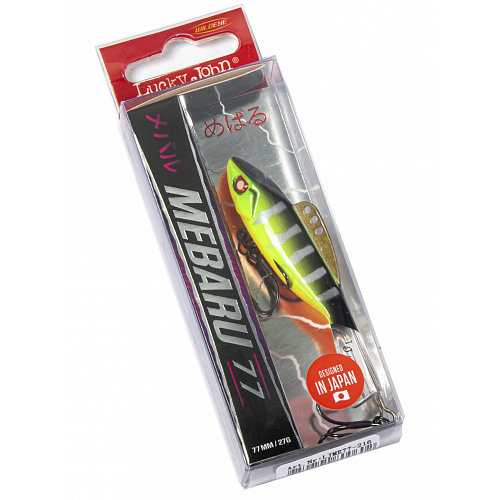 Mebaru – балансир, разработанный в Японии, для ловли хищной рыбы со льда и в отвес с дрейфующей лодки. Приманка изготовлена из свинцового сплава с корпусом и хвостом, сформированными из цельного морозостойкого и ударопрочного пластика ABS. Длинный хвост обеспечивает четкие развороты приманки в крайних точках траектории движения. В спинном плавнике, изготовленном из латуни, имеется три отверстия. В зависимости от точки крепления, игра приманки изменяется.На приманке установлены крючки Owner.