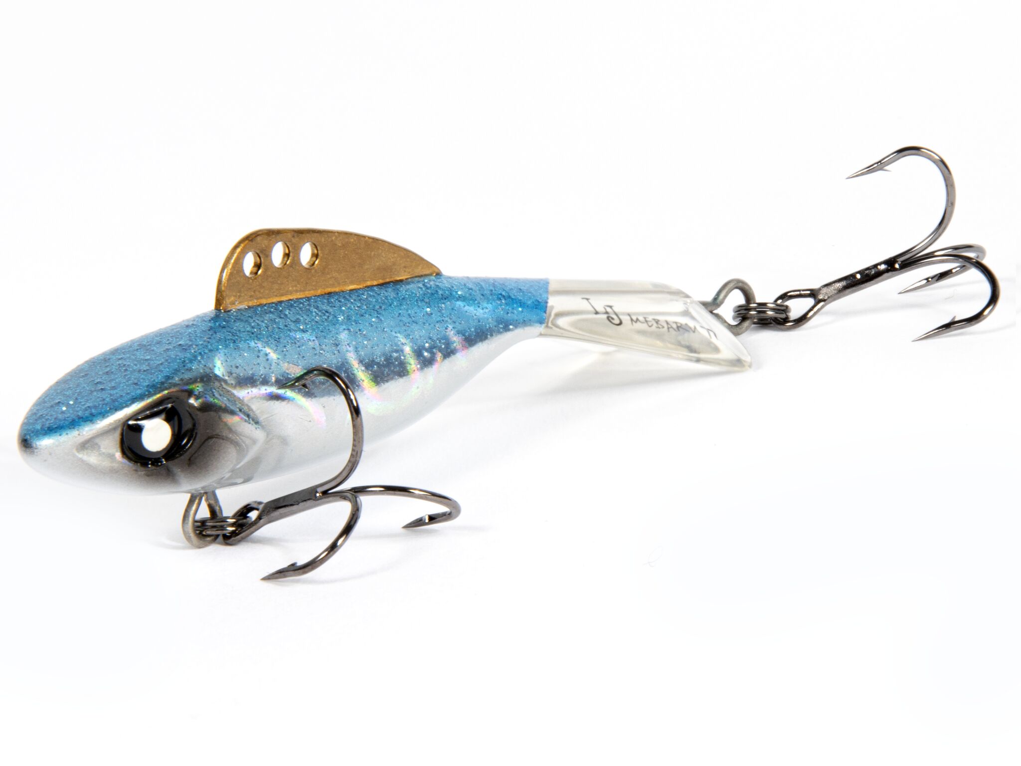 Mebaru – балансир, разработанный в Японии, для ловли хищной рыбы со льда и в отвес с дрейфующей лодки. Приманка изготовлена из свинцового сплава с корпусом и хвостом, сформированными из цельного морозостойкого и ударопрочного пластика ABS. Длинный хвост обеспечивает четкие развороты приманки в крайних точках траектории движения. В спинном плавнике, изготовленном из латуни, имеется три отверстия. В зависимости от точки крепления, игра приманки изменяется.На приманке установлены крючки Owner.