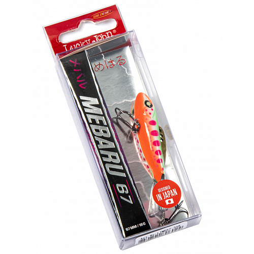 Mebaru – балансир, разработанный в Японии, для ловли хищной рыбы со льда и в отвес с дрейфующей лодки. Приманка изготовлена из свинцового сплава с корпусом и хвостом, сформированными из цельного морозостойкого и ударопрочного пластика ABS. Длинный хвост обеспечивает четкие развороты приманки в крайних точках траектории движения. В спинном плавнике, изготовленном из латуни, имеется три отверстия. В зависимости от точки крепления, игра приманки изменяется.На приманке установлены крючки Owner.