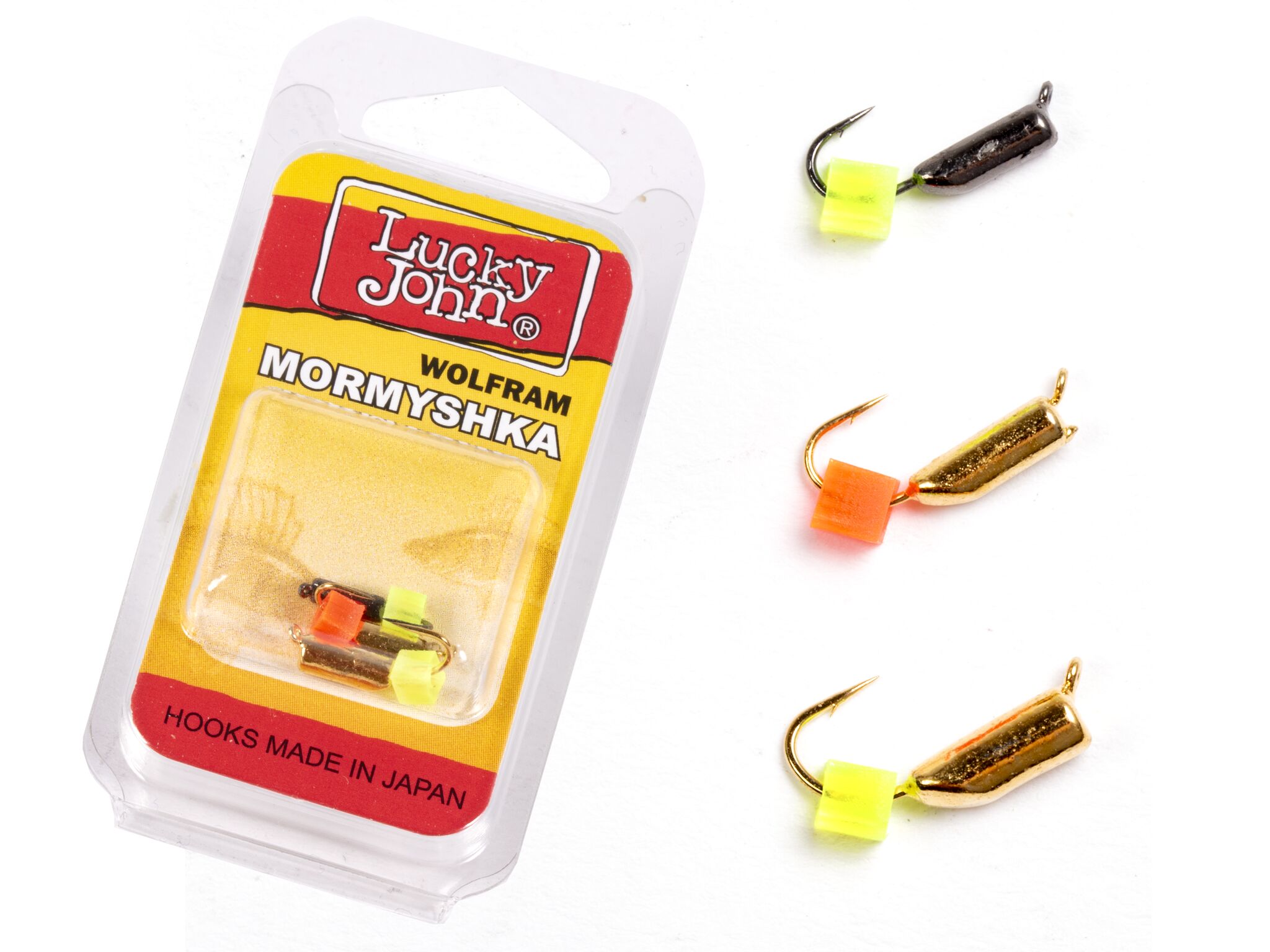 Мормышки вольфрамовые Lucky John с петелькой 3шт набор СТОЛБИК безнасадочный блистер