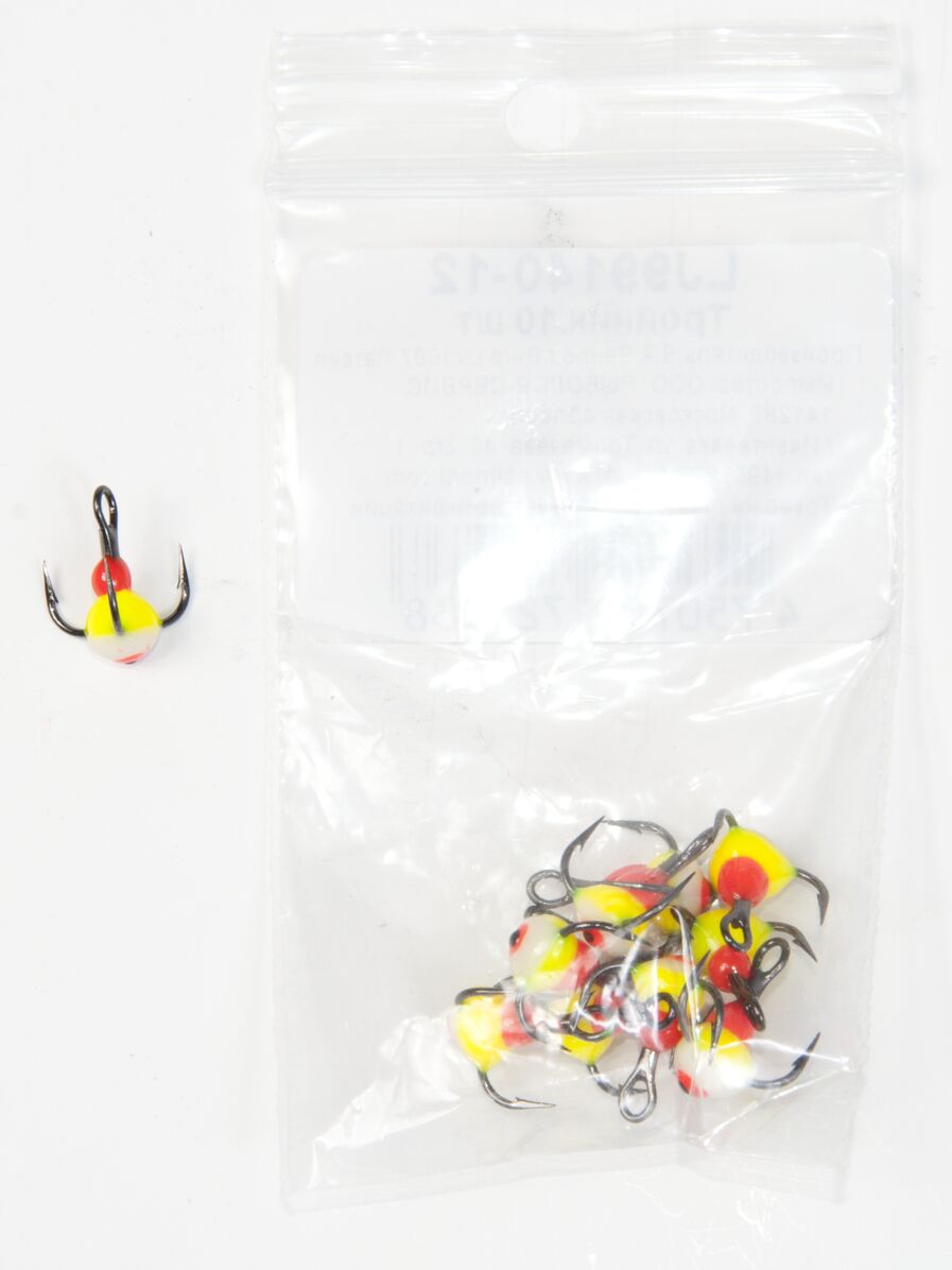 Тройники с пластиковой цветной каплей. Используется для комплектации балансиров и вертикальных блёсен.