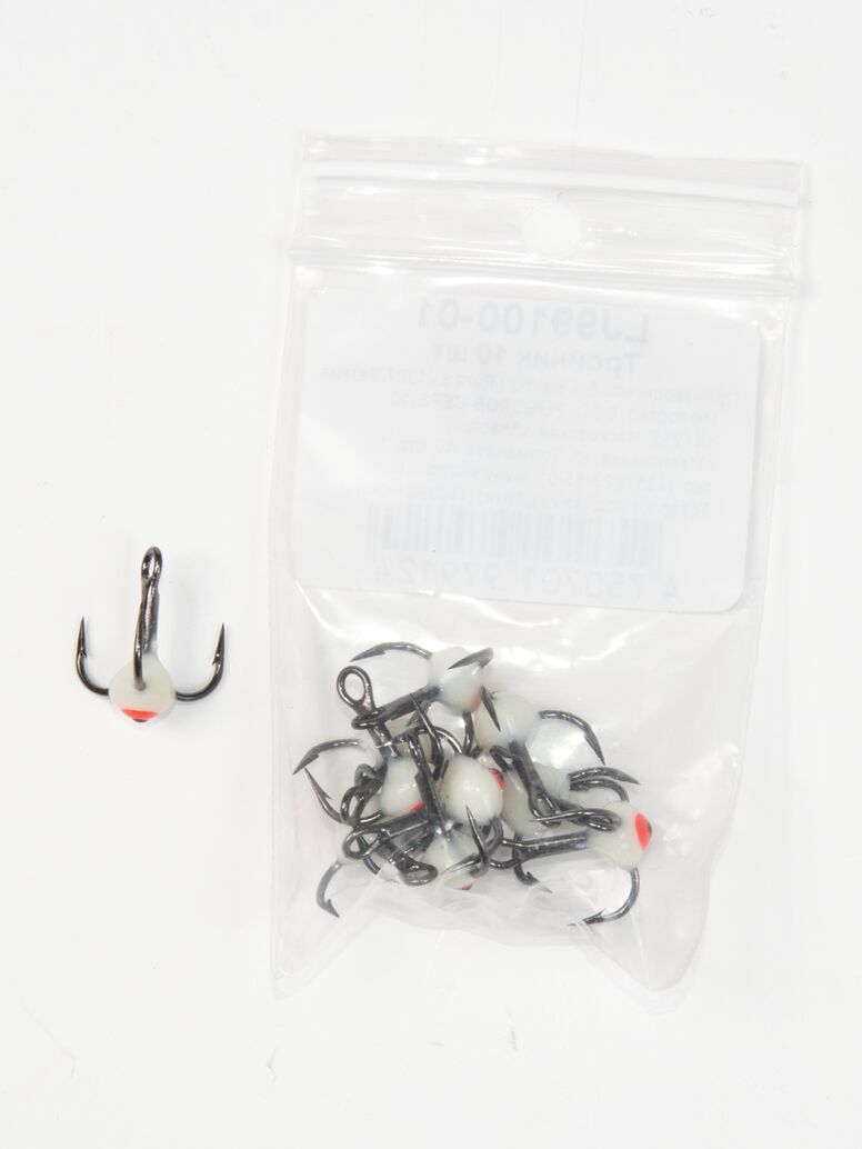 Тройники с пластиковой цветной каплей. Используется для комплектации балансиров и вертикальных блёсен.