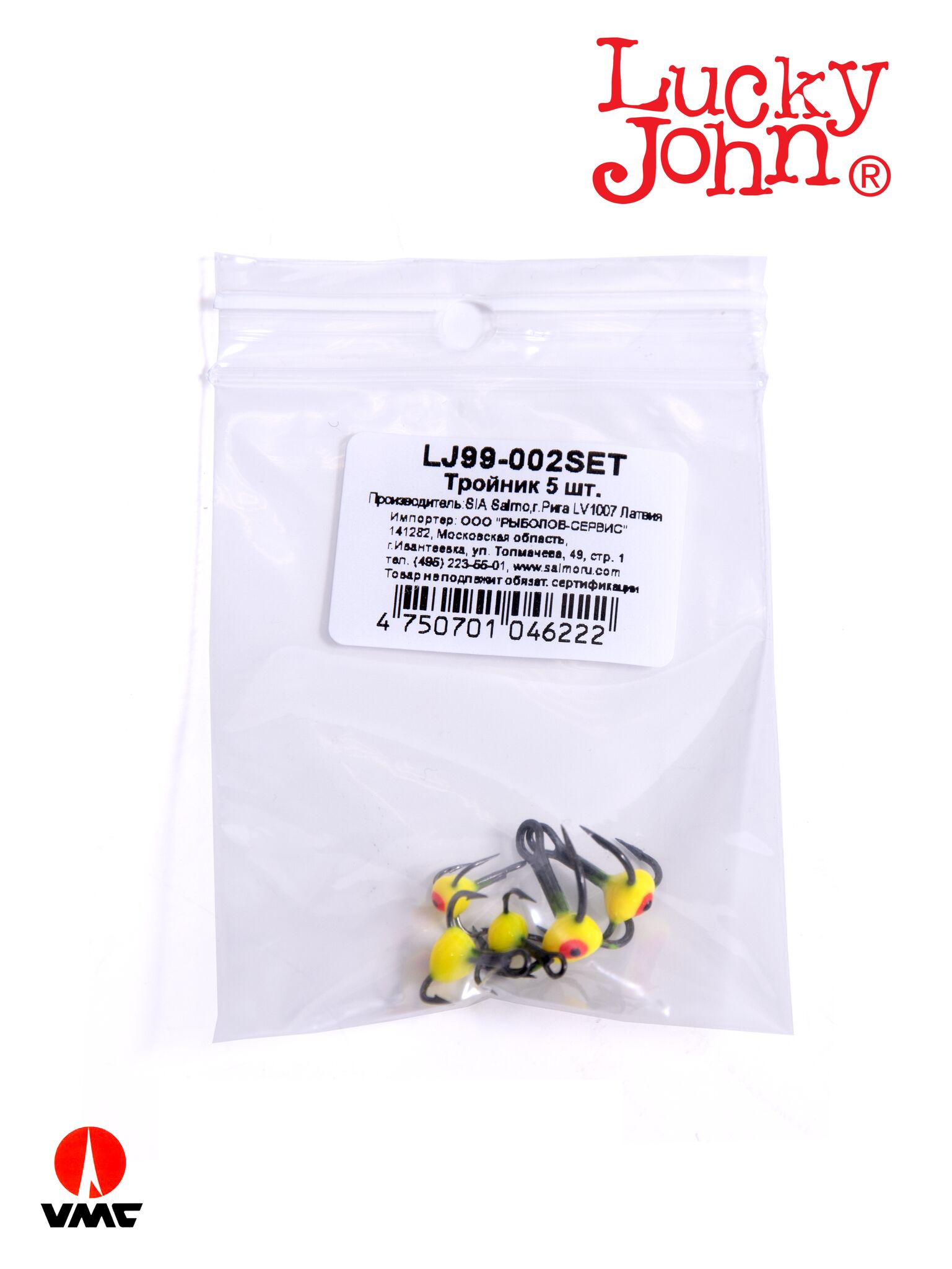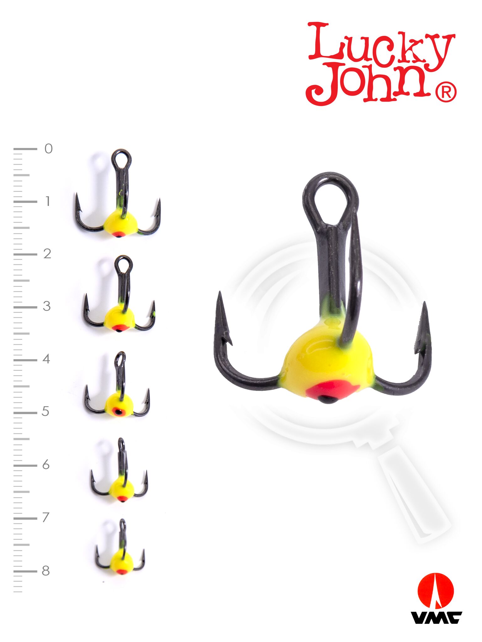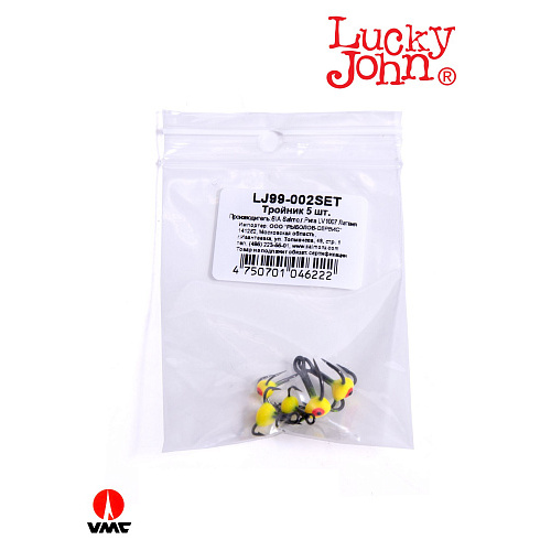 Крючки-тройники для приманок Lucky John 02SET с каплей цвет. 5шт. набор