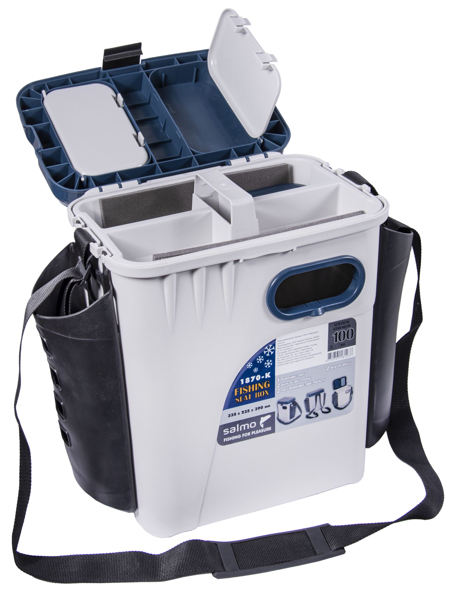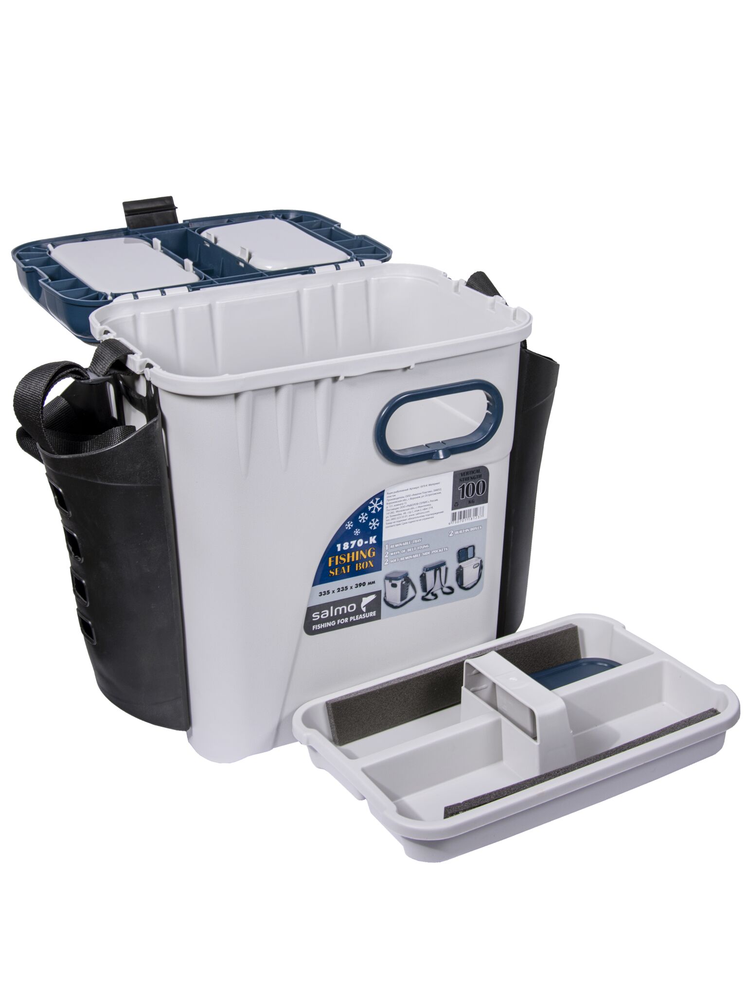 Ящик рыболов. зим. Salmo 2-х ярус. пласт. с карманами 33.5х23.5х39см